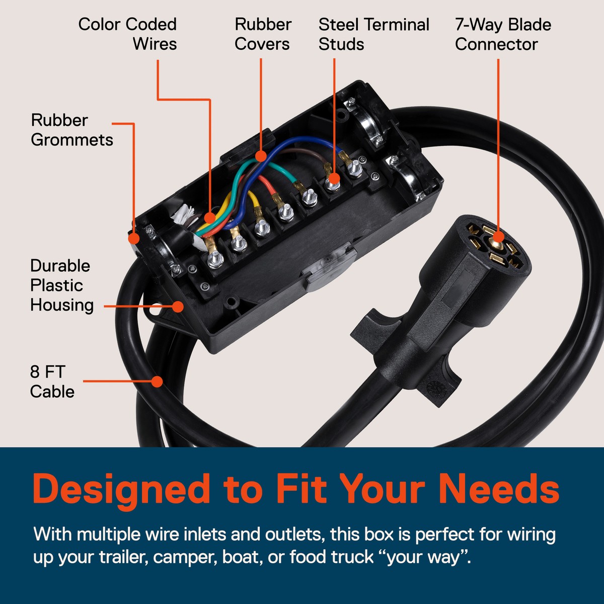 New Heavy Duty 8 Ft 7 Way Plug Inline Trailer Cord Junction Box 0090038 Uncle Wiener S Wholesale